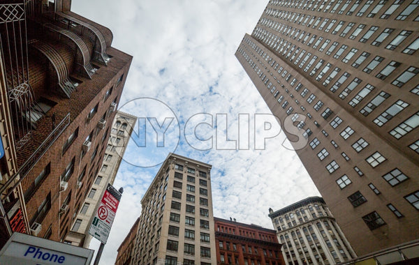 buildings, upward, up, looking up, upward angle, angle, towering, payphone, pay phone, public phone, phone, street, day, daytime, parking sign, alternate parking, sign, parking, alternate