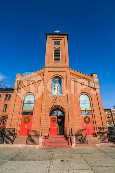 church, religion, christianity, spirituality, architecture, holy, red brick, brick, front, doors, steps, cross
