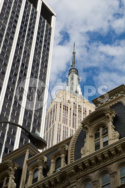 beautiful day, blue sky, building, close, close-up, closeup, clouds, day, daytime, empire state, empire state building, landmark, manhattan, sky, skyscraper, spring, summer, tight, tight shot