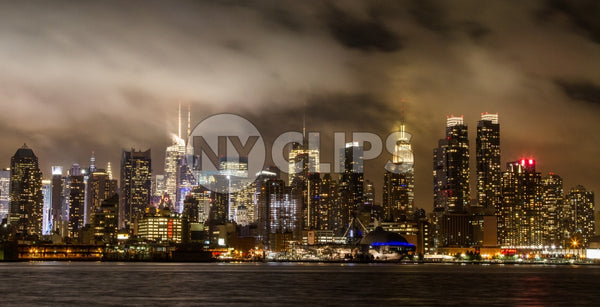 buildings, clouds, cloudy, east river, empire state, empire state building, evening, far, landmark, long, manhattan, night, nighttime, river, skyline, skyscrapers, water