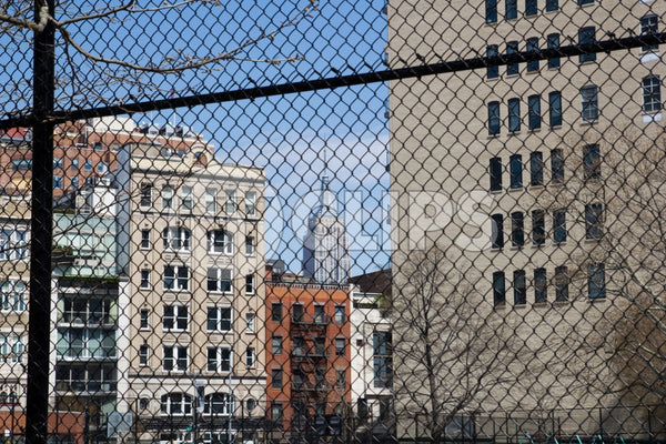 empire state building, empire state, building, skyscraper, landmark, beautiful day, fence, blue sky, spring, summer, daytime, day, clouds, sky, manhattan