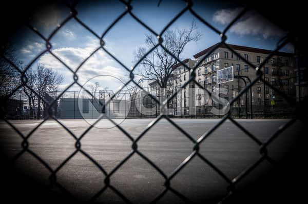 basketball court, court, courts, fence, harlem, through, winter