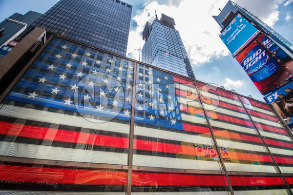 american flag, times square, manhattan, daytime, day, summer, spring, led, led light, armed forces, recruiting, recruiting center, hdr