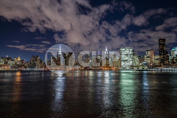 beautiful, building, buildings, chrysler, east river, empire state, empire state building, evening, far, landmark, long, manhattan, night, nighttime, river, skyline, skyscrapers, un, united nations, water
