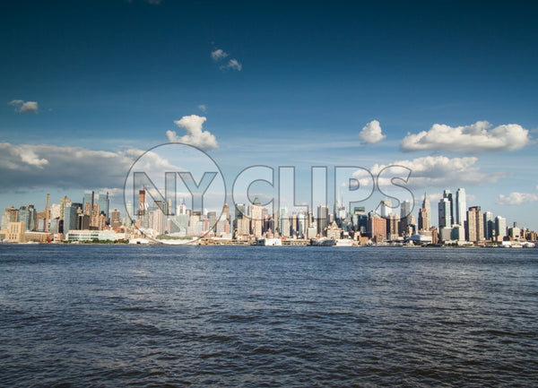 Home|Manhattan skyline on bright sunny day from across East River water