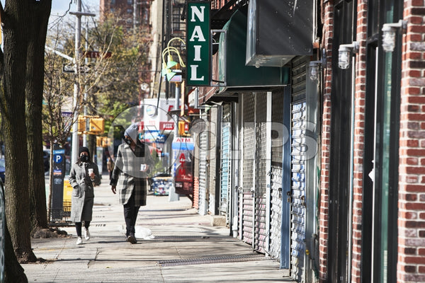 nyc, new york, new york city, outside, outdoor, couple, mask, masks, covid, pandemic, walking, coffee, people, man, woman